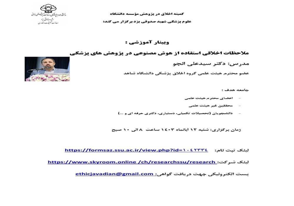 وبینار ملاحظات اخلاقی استفاده از هوش مصنوعی در پژوهشهای پزشکی