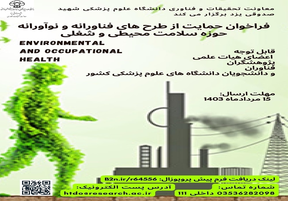 فراخوان حمایت از طرحهای فناورانه و نوآورانه حوزه سلامت محیطی و شغلی