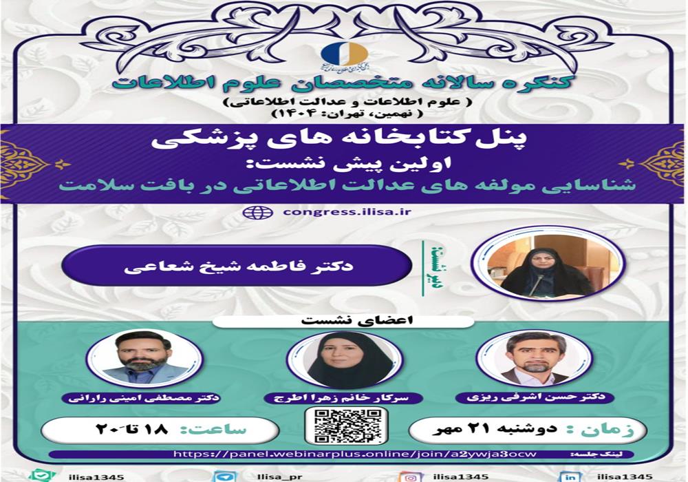 اولین پیشنشست پنل کتابخانههای پزشکی نهمین کنگره سالانه متخصصان علوم اطلاعات با عنوان «شناسایی مولفههای عدالت اطلاعاتی در بافت سلامت»