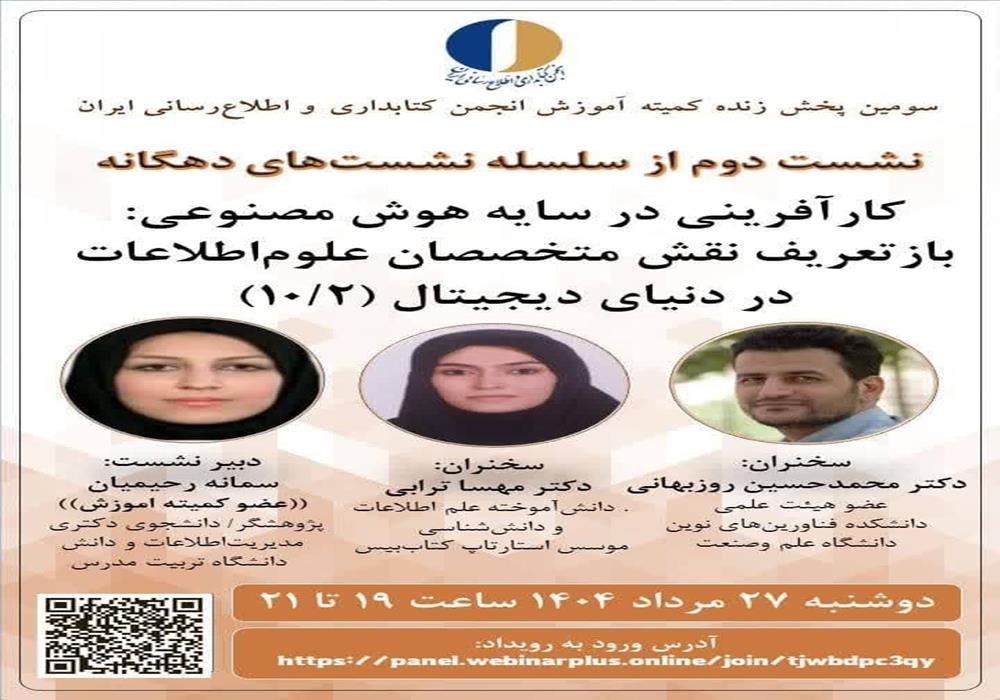 برگزاری دومین نشست علمی «کارآفرینی در سایه هوش مصنوعی» توسط انجمن کتابداری و اطلاعرسانی ایران