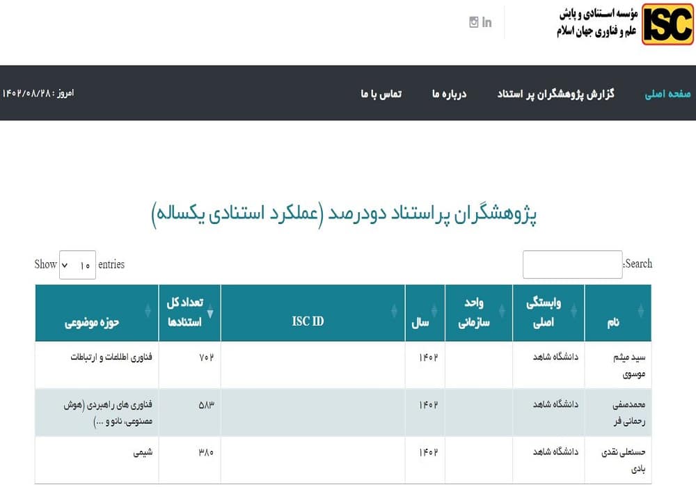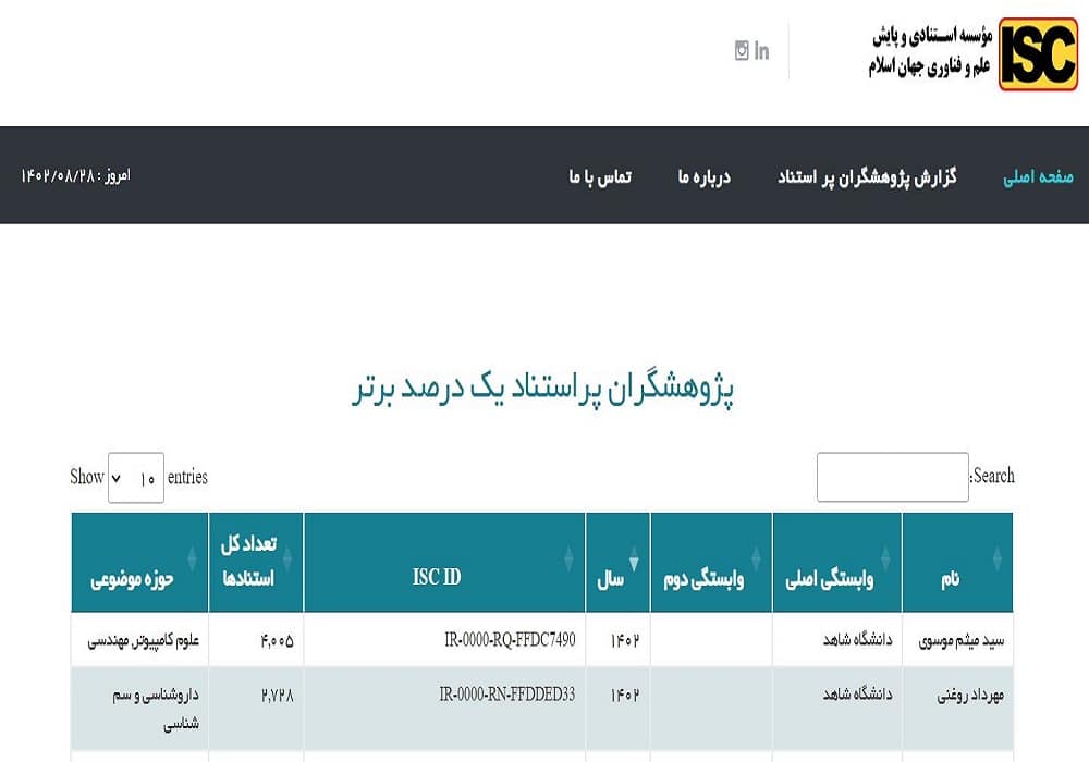 پژوهشگران دانشگاه شاهد در زمره پژوهشگران پُراستناد یک درصد برتر جهان در سال 2023