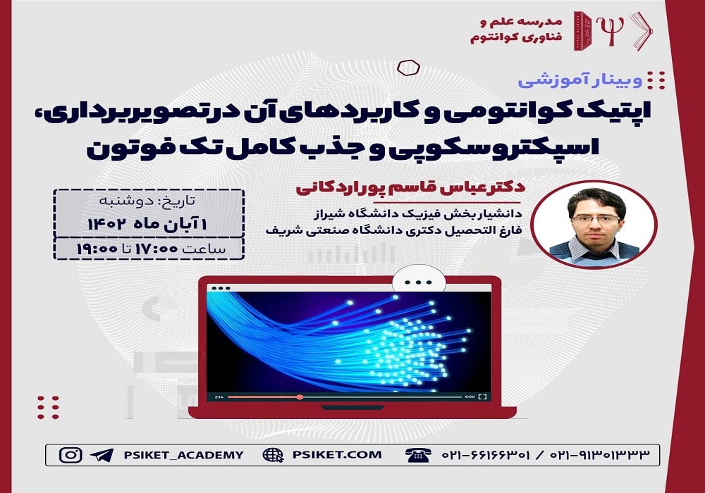 وبینار آموزشی «اپتیک کوانتومی و کاربردهای آن در تصویربرداری، اسپکتروسکپی و جذب کامل تک فوتون»