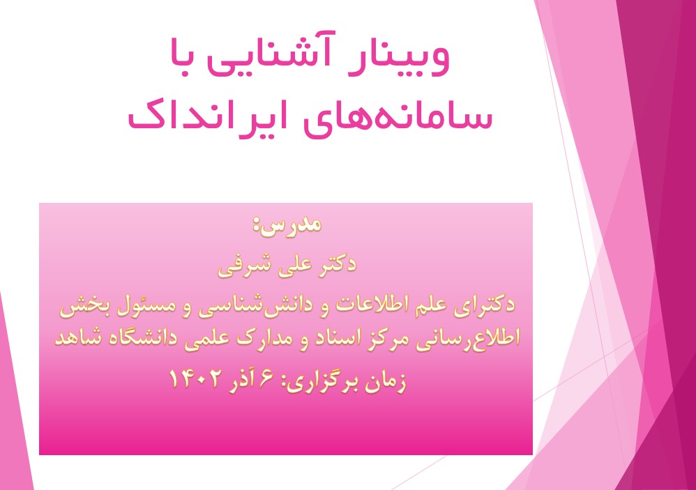 وبینار آموزشی «آشنایی با مرکز اسناد و مدارک علمی و سامانههای ایرانداک»