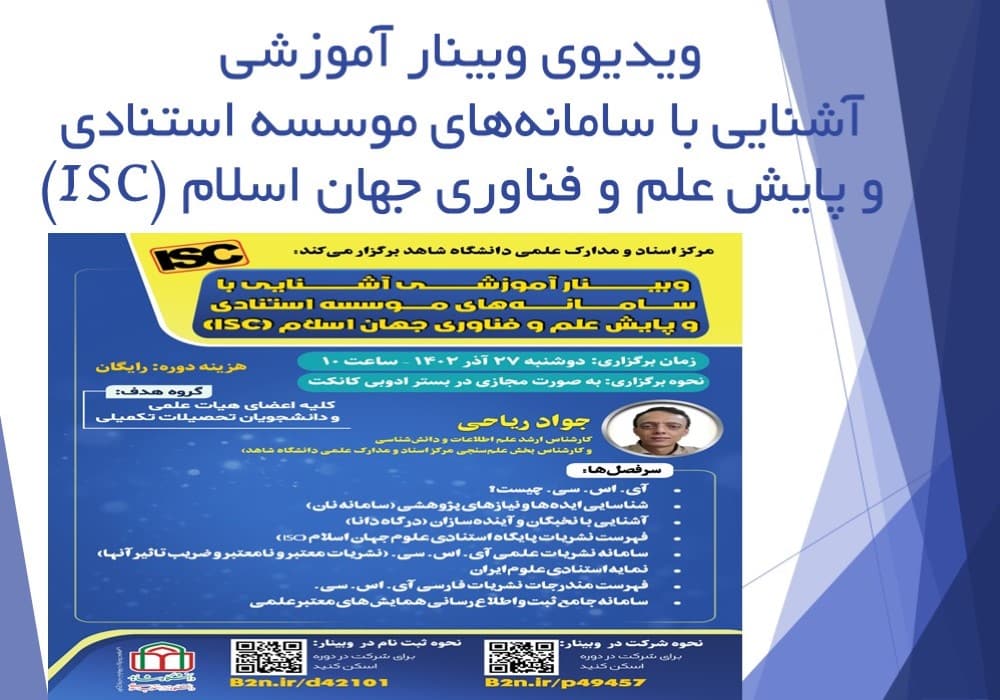 ویدیوی آموزشی آشنایی با سامانههای موسسه استنادی و پایش علم و فناوری جهان اسلام (ISC)