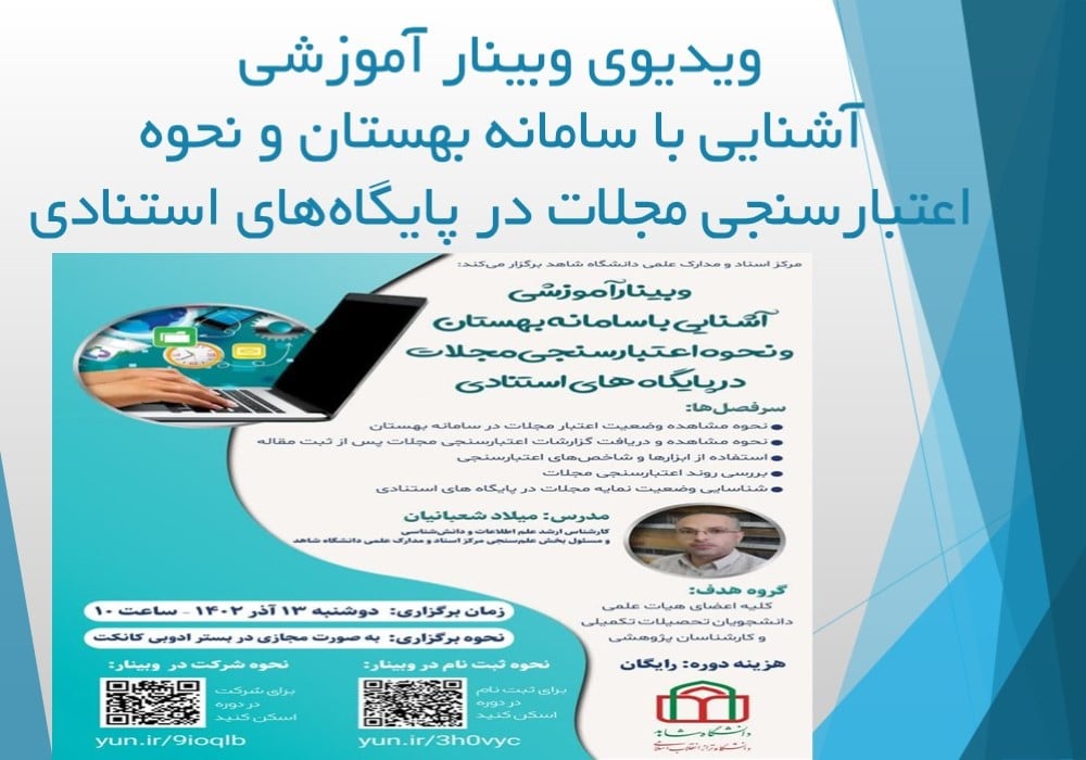 ویدیوی آموزشی آشنایی با سامانه بهستان و نحوه اعتبارسنجی مجلات در پایگاههای استنادی