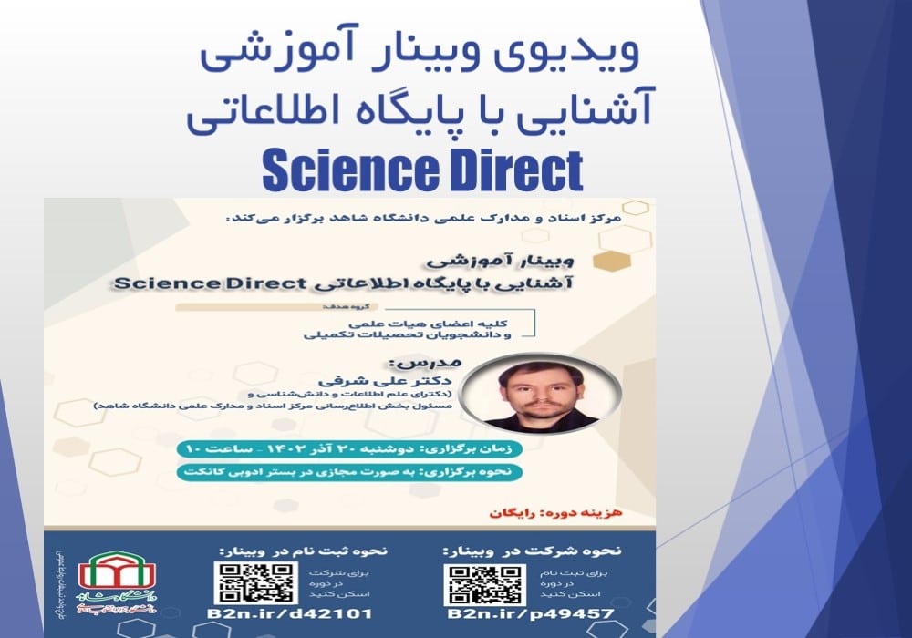 ویدیوی آموزشی آشنایی با پایگاه اطلاعاتی ساینس دایرکت (ScienceDirect)