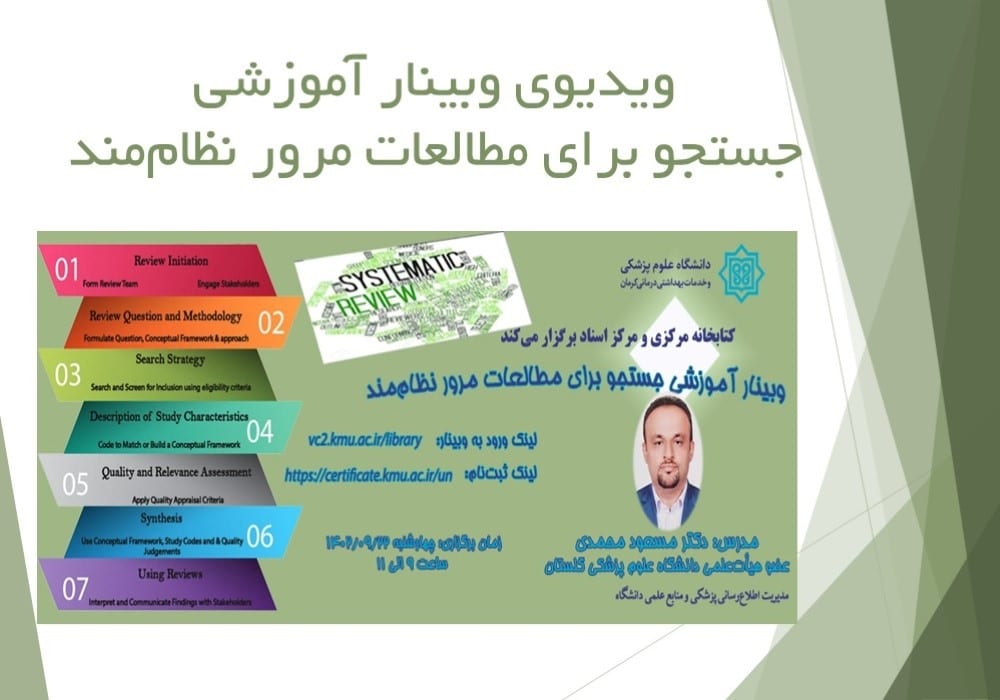 ویدیوی وبینار آموزشی جستجو برای مطالعات مرور نظاممند