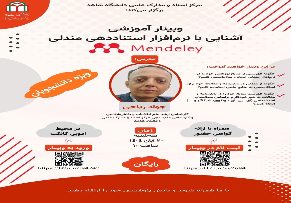 وبینار آموزشی «آشنایی با نرمافزار استناددهی مندلی (Mendeley)»