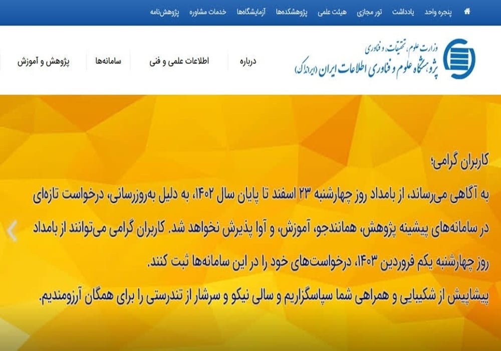 اطلاعیه ایرانداک درخصوص سامانههای پیشینه پژوهش، همانندجو، آموزش و آوا