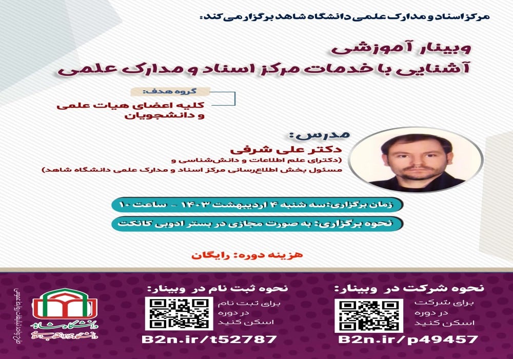 وبینار آشنایی با خدمات مرکز اسناد و مدارک علمی دانشگاه شاهد