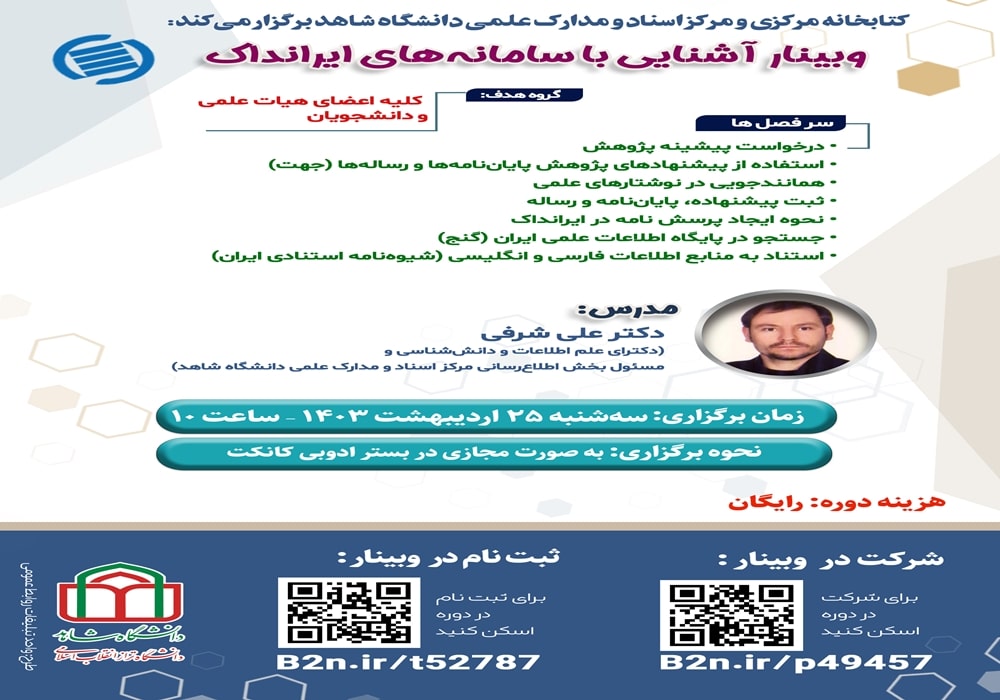 وبینار آموزشی «آشنایی با مرکز اسناد و مدارک علمی و سامانههای ایرانداک»