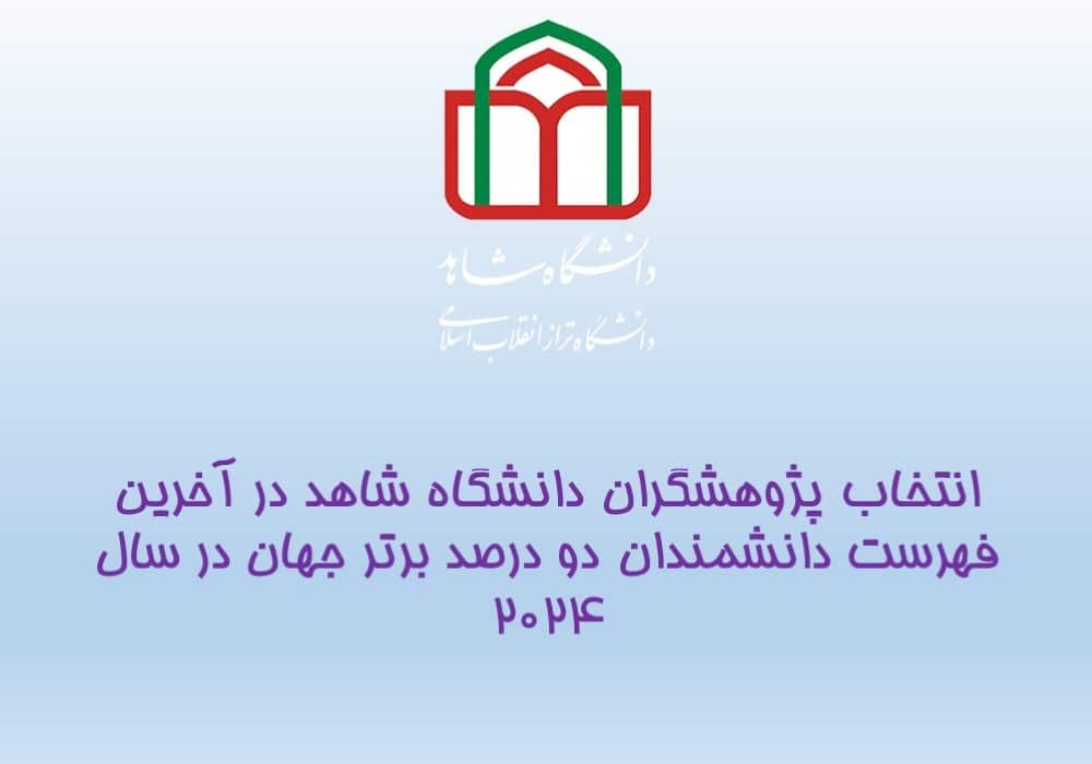 انتخاب پژوهشگران دانشگاه شاهد در آخرین فهرست دانشمندان دو درصد برتر جهان در سال 2024
